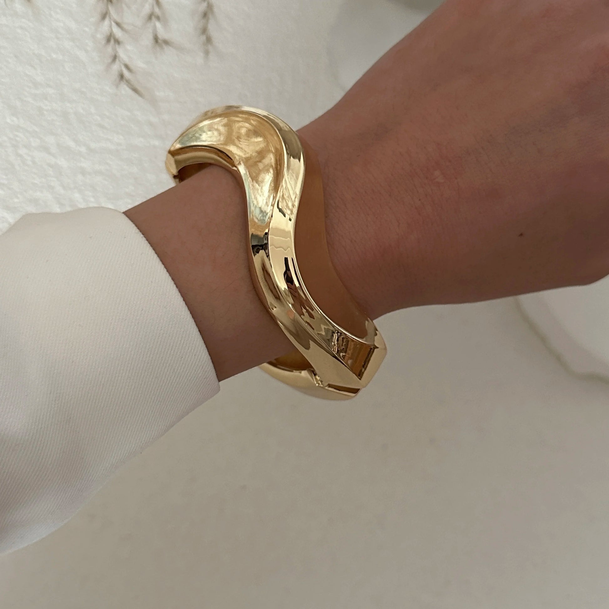 Vintage Metal Wave Twist Smooth Irregular Bracelet for Women Exaggerated Geometric Chunky Cuff Bangle Hip Hop Punk Jewelry